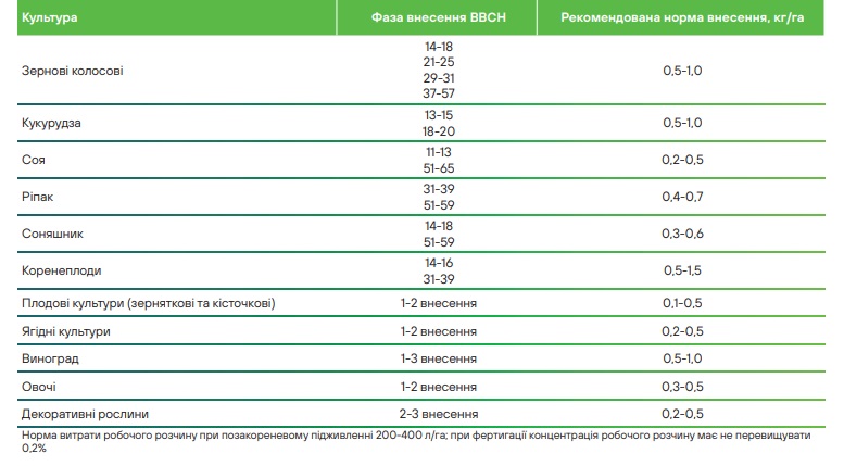 - Застосовується на широкому спектрі сільськогосподарських та декоративних культур;